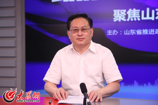 山東省工商局黨組書記、局長楊宜新做客大眾網演播室。(亓翔 攝)