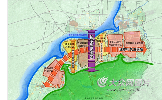 加快小清河沿線地區建設,提升景觀環境質量。繼承和保護以千佛山、大明湖、四大泉群和古城區、商埠區、黃河為主體的城市風貌特色。文東科教區發揮大專院校、科研單位集中的優勢,完善科研教育中心功能。其它地區以發展居住為主。