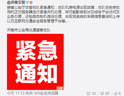 據濟南市車管所官微回應,今天下班前網絡無法恢復。