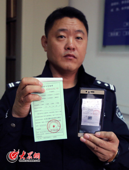 濟南歷下交警展示展示違法告知單與假單據(jù)照片