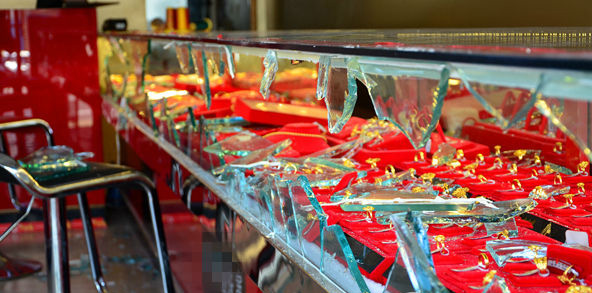 據(jù)了解,被搶劫的金店位于墾利區(qū)城區(qū)興隆商業(yè)街中段。有媒體報道稱,當(dāng)時三名歹徒突然闖入店中,三個人都蒙著臉。其中兩人手里拿著砍刀,還有一人手里拿著鐵錘,三人進店后便將店主挾持到金店內(nèi)間。起初店主還進行了反抗,但是后來歹徒用鐵錘和刀背擊打他頭部,并被威脅稱,再反抗捅死他。最后歹徒將店主鎖在內(nèi)間里后開始砸柜臺搶劫,整個過程大約持續(xù)兩分鐘。其中一名服務(wù)員頭部受到輕傷,犯罪嫌疑人逃離現(xiàn)場。