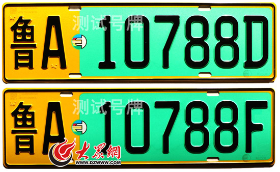 今天上午,大眾網記者在濟南市車管所見到了兩種新能源汽車樣牌,綠色為主色調的新式號牌看上去給人一種賞心悅目的輕松舒暢感,這也和新能源汽車環保綠色的主題相契合。新能源汽車號牌分為小型汽車車牌和大型汽車車牌,小型車牌采用漸變綠色作為底色,大型車牌底色則是黃綠雙拼色,其中“魯A”字樣為黃色。