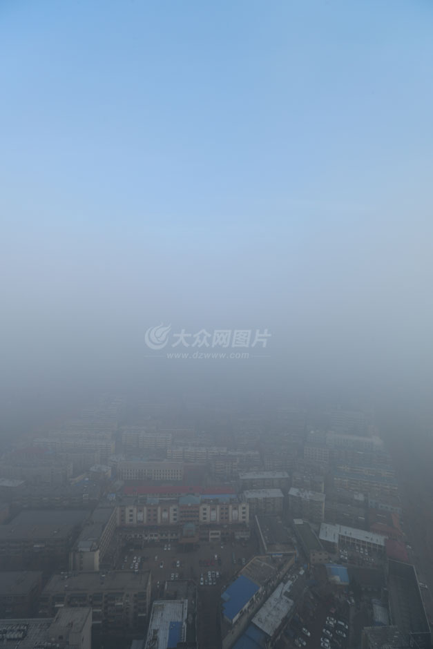 1月6日,山東省氣象臺(tái)繼續(xù)發(fā)布大霧黃色預(yù)警信號(hào)和霾橙色預(yù)警信號(hào)。大眾網(wǎng)記者在150米高空拍攝下的濟(jì)南城區(qū),整座城市灰蒙蒙一片,霧霾和藍(lán)天相隔一線。大眾網(wǎng)記者 王長(zhǎng)坤 攝