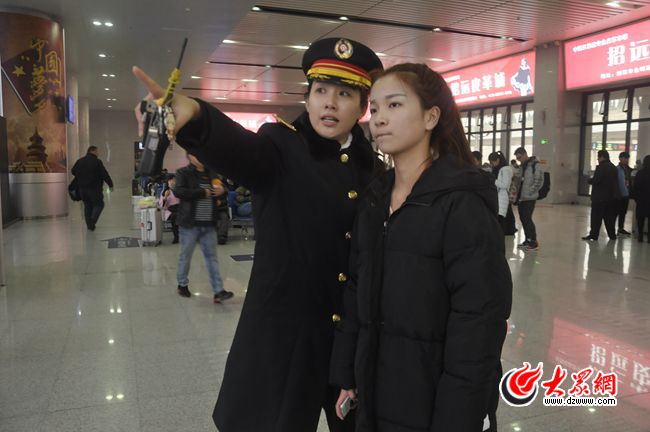 19日下午,煙臺南站客運主任李好先是手把手教給五名青年志愿者,如何幫助旅客使用自動取票機。接著又回到候車室引導旅客檢票,去安檢處幫著一起看安檢儀。列車來了,她又冒著風雪到站臺上維持秩序,直到旅客全部安全上車,看看列車駛出站臺,她才回到屋內。