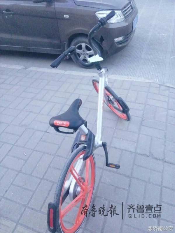 經民警核查留存的違停通知單第一聯,該違停處罰通知單,是天橋交警13日下午1點,對歷山北路一輛違停藍色轎車張貼的。至于為何跑到了摩拜單車上,民警分析可能是被貼單的駕駛員或者其他人惡作劇貼上去的,并不是交警的職務行為。