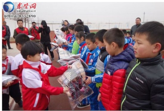 2月16日,東營區三中的小學生志愿者為利津縣陳莊鎮薄家小學的孩子們送去溫暖包。這是勝利油城公益“暖流計劃——溫暖農家娃”活動的一部分,購買愛心溫暖包的資金來自于前期小報童的賣報活動,小學生志愿者在鍛煉了自己的同時,也為農村的孩子送去了溫暖。(記者 任輝)