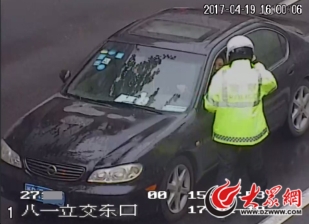 交警在八一立交橋南頭將這輛黑色的假牌轎車攔停。