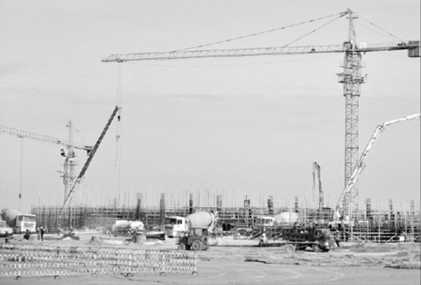 上海廟—山東特高壓直流輸電工程之一的上海廟換流站施工現場。