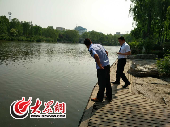 歷下環(huán)保人員正在大明湖邊進(jìn)行排查。