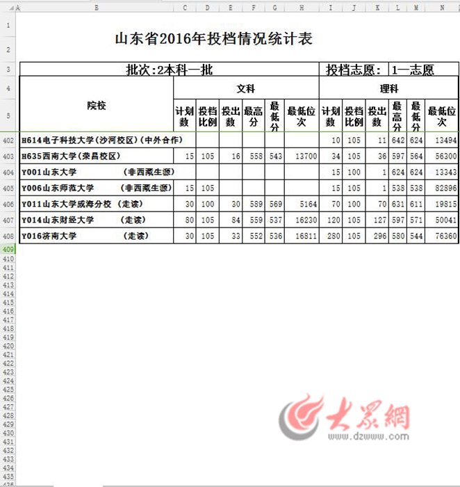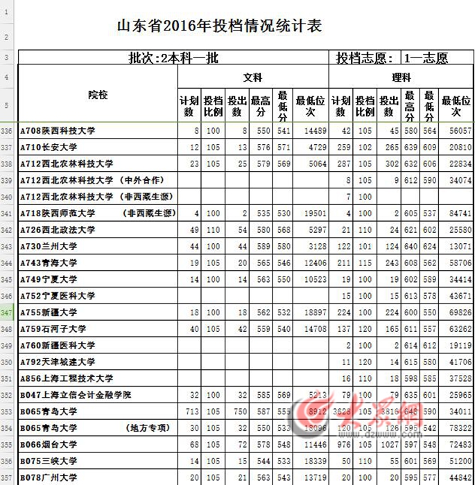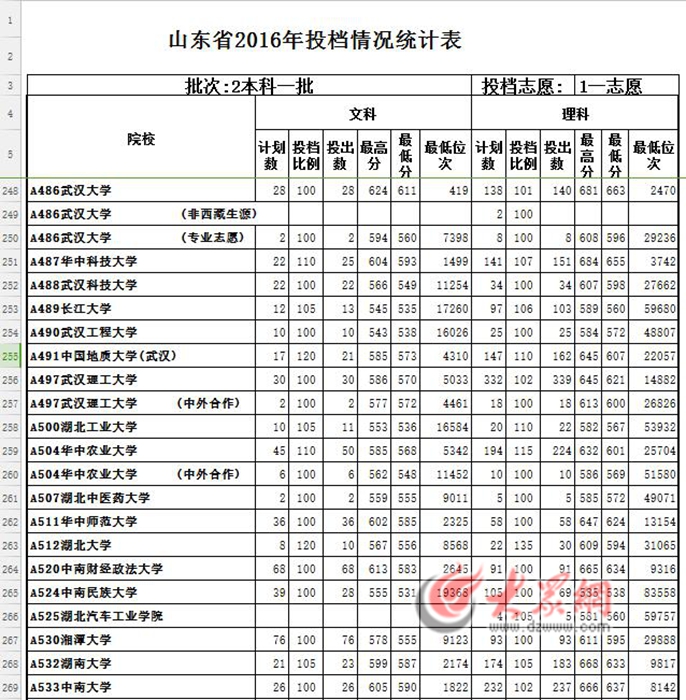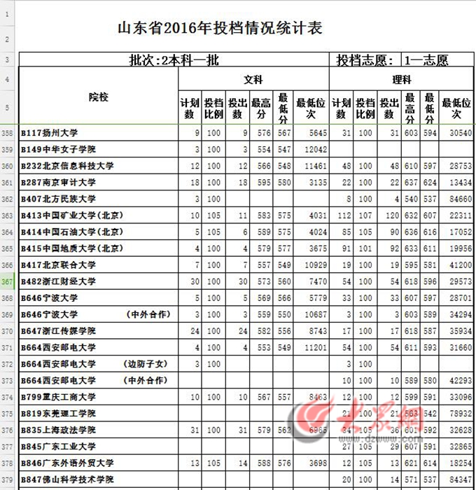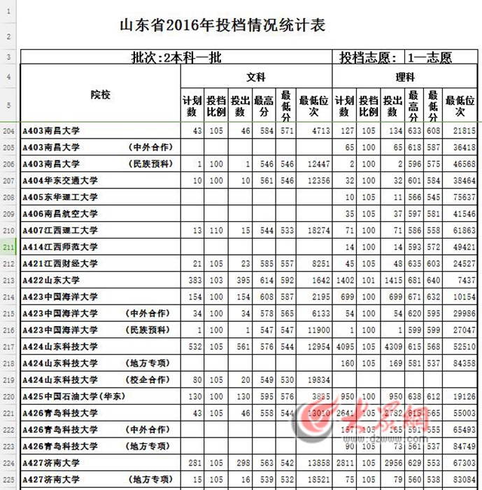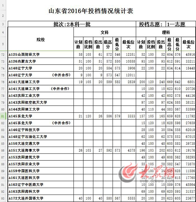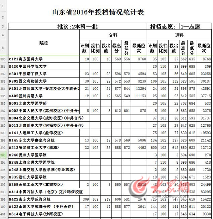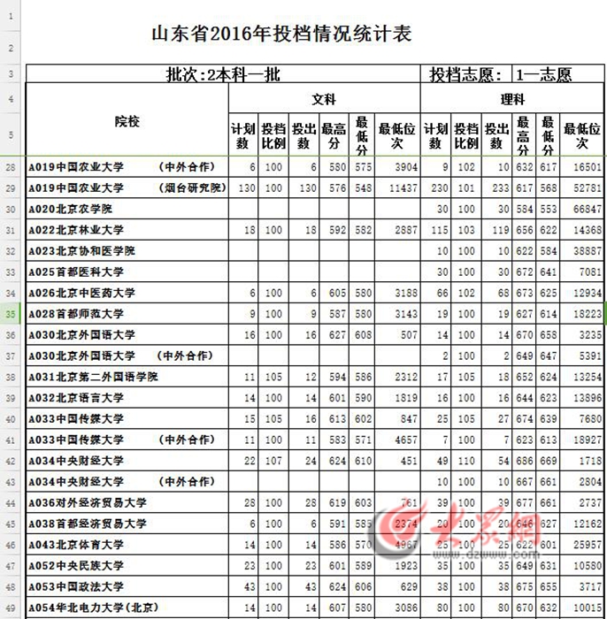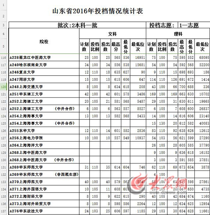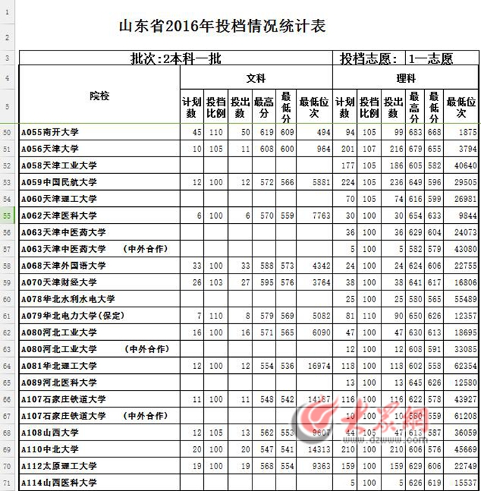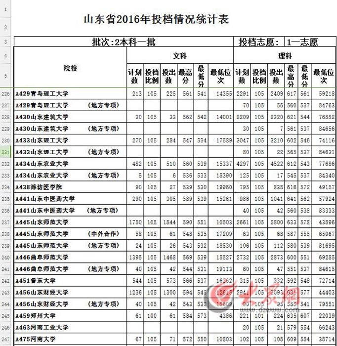 大眾網濟南6月24日訊 今天下午,山東省教育招生考試院官方網站公布2016年一本、二本投檔統計表。該表包含了2016年高考期間,所有本科高校當年在魯招生計劃,錄取最高分、最低分、還有位次,對于考生填報志愿極具參考價值。