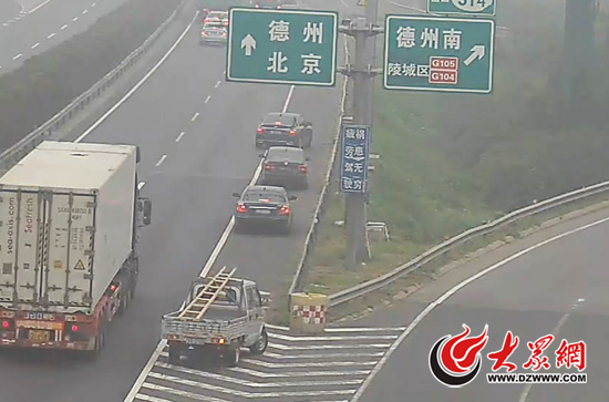 昨天上午京臺高速德州段發生團霧,直到10:27才解除封閉。10:45左右,車輛通行仍處于高峰期,高速交警通過視頻巡檢發現,北京方向與德州南方向分道口處的應急車道里依次停著3輛私家車,隨后又駛來一輛小貨車停下。