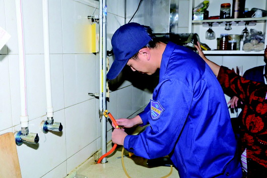 港華燃?xì)馍祥T服務(wù)人員都統(tǒng)一著有公司袖標(biāo)的工裝。