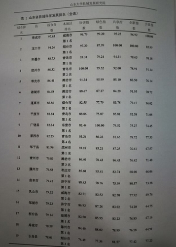 大眾網(wǎng)濟南12月3日訊 今天上午,山東大學縣域發(fā)展研究院發(fā)布“五大理念視角下的山東省縣域科學發(fā)展排名”,榮成市、龍口市、即墨市位列榜單前三名。