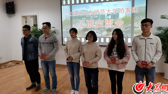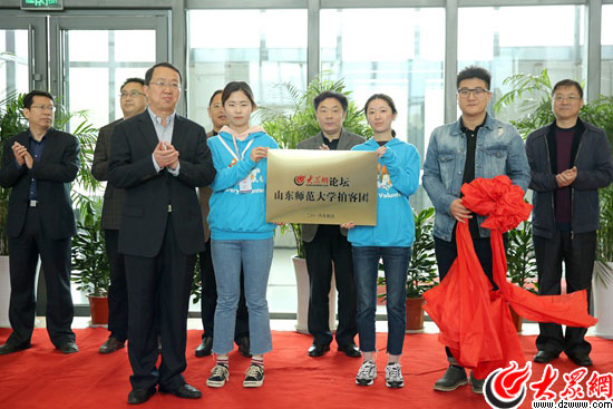 山東師范大學圖書館館長杜保國與大眾網互動評論部首席編輯董飛為大學生拍客團揭牌并授牌