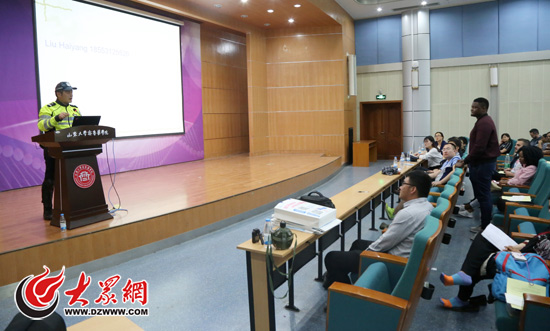 民警為齊魯醫學院的近百名外國留學生講解交通安全