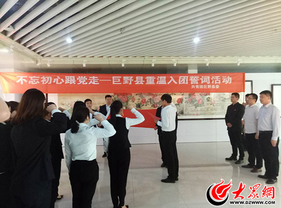 為增強團員青年們的政治榮譽感,凝聚團員共識和力量,座談會后,集體開展了“不忘初心跟黨走-巨野縣重溫入團誓詞”活動。面對團旗,團員們高舉右拳莊嚴宣誓:“我志愿加入中國共產(chǎn)主義青年團,堅決擁護中國共產(chǎn)黨的領(lǐng)導(dǎo),遵守團的章程,執(zhí)行團的決議,履行團員義務(wù),嚴守團的紀律,勤奮學習,積極工作,吃苦在前……。