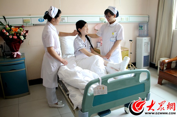 白衣天使和堅(jiān)強(qiáng)的法院書記員黃姿杉聊天。黃姿杉,開發(fā)區(qū)人民法院書記員,因左足舟骨骨折在菏澤博愛醫(yī)院接受治療。