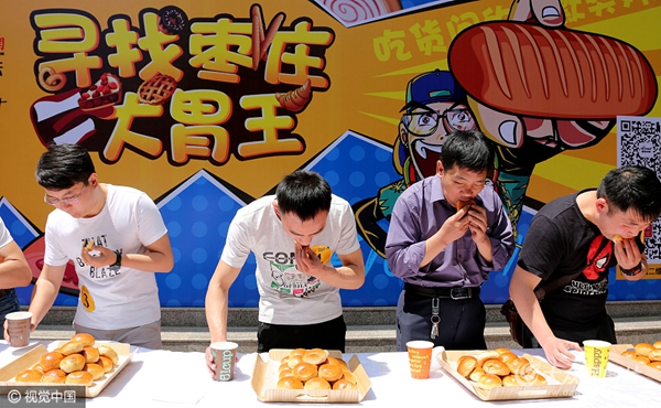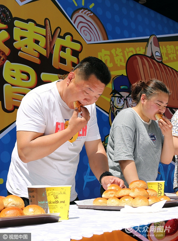 大眾網(wǎng)棗莊5月2日訊 4月30日,棗莊市一家面包房舉辦吃蛋糕、面包比賽競(jìng)選“大胃王”活動(dòng)。此次比賽分為情侶組、親子組、單人挑戰(zhàn)組3個(gè)組別,參賽者在規(guī)定的時(shí)間內(nèi)吃的最快、最多者獲勝,吸引眾多市民報(bào)名參賽,為“五一”佳節(jié)增添樂(lè)趣。(圖片作者:吉喆/視覺(jué)中國(guó))