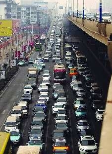 2月8日,和親人過完春節的人們忙著返回自己的工作崗位,忙碌的新的一年又開始了。圖為長途車站附近的擁堵車流。