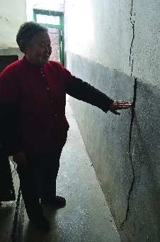 公廁墻體的不少地方已經出現(xiàn)裂縫。