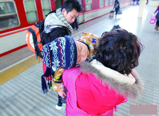 抱著睡熟的孩子,這一家三口踏上回家路。陸金星