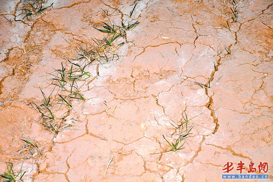 膠南市濱海街道的一處農田地表已干裂。