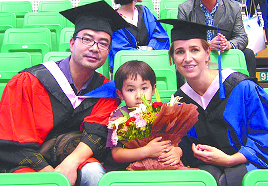 史冠新教授和他的德國妻子及兒子在一起