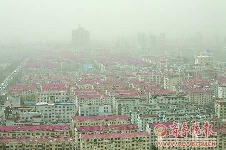 5月1日,受內蒙古等地沙塵暴的影響,威海遭遇2011年以來的首次浮塵天氣。圖為浮塵籠罩威海市區。新華社發