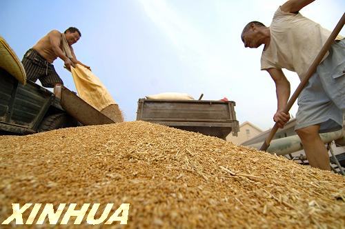 在山東聊城市高唐縣姜店鄉糧食購銷公司,村民在售糧(6月21日攝)。