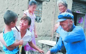在金鄉縣雞黍鎮任樓村居住的河南七旬拾荒夫婦,把撿來的3萬現金交還失主。此事經本報報道后,感動了魯豫兩地。老漢說他的愿望是看看孫子,經本報和河南媒體牽針引線,這對夫婦3日在金鄉與兒孫相聚,老漢激動得落淚。 本報記者 黃廣華 攝