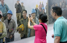 8月27日,觀眾在山東省博物館新館觀看書畫攝影展。當(dāng)日,第四屆山東國際大眾藝術(shù)節(jié)開幕式在這里舉行,400余件書畫攝影作品在這里展出,受到觀眾熱捧。
