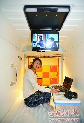 ▲“膠囊”里有電視、網絡等。