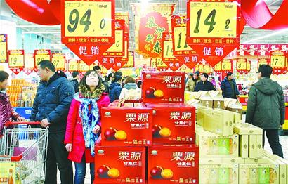 昨日(26日),在濟南某超市,年前紅紅火火的“年貨大集”在節后依然人流如織。 (范良 攝)