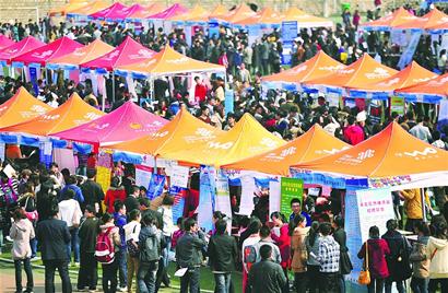 昨天,“山東半島藍色經濟區”和“黃河三角洲高效生態經濟區”暨山東省民營企業財經人才專場招聘會在山東財經大學燕山校區舉行,吸引近萬名大學畢業生參加。