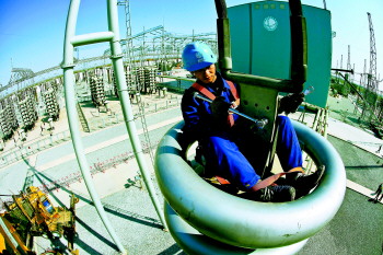 從二季度至年底,全省電力供應(yīng)將持續(xù)“吃緊”,夏季缺口約300萬千瓦,冬季缺口約500萬千瓦。預(yù)計(jì)2012全年統(tǒng)調(diào)最高負(fù)荷將達(dá)到5500萬千瓦,同比增長12%。山東電力集團(tuán)從優(yōu)化電網(wǎng)運(yùn)行方式、加快電網(wǎng)建設(shè)和加強(qiáng)需求側(cè)管理等方面入手,全力以赴保供應(yīng)。圖為4月7日,山東電力集團(tuán)檢修施工人員在位于膠州的膠東換流變電站對設(shè)備進(jìn)行維護(hù)清理。