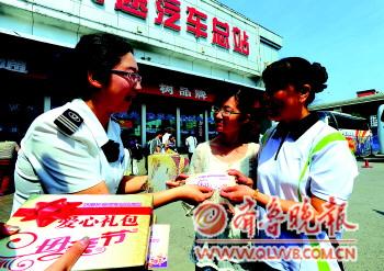 在母親節到來之際,濟南長途汽車總站特別送出母親節大禮包,在乘車、購票等環節為母親旅客提供服務。同時,總站還準備了上千朵康乃馨,送給帶孩子出行或較為年長的女性旅客。 本報記者 左慶 王媛 攝影報道