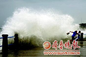 今年第9號臺風“達維”和第10號臺風“蘇拉”雙雙來襲,山東、江蘇、上海、浙江、福建、臺灣等省市受到影響。2日,山東省氣象臺發布史上首個臺風紅色預警。圖為8月2日下午5時許,受臺風“達維”影響,青島音樂廣場附近掀起近10米高的巨浪。 本報記者 張曉鵬 攝
