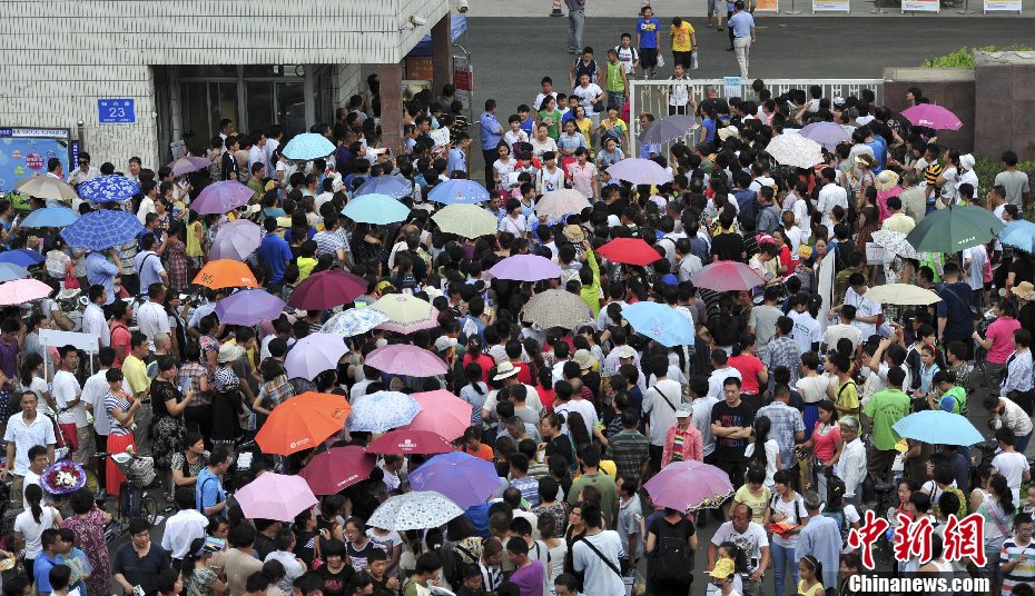 7月7日,近萬名小學(xué)應(yīng)屆畢業(yè)生參加濟(jì)南兩所中學(xué)舉行的小學(xué)升初中考試,萬余“小升初”陪考家長,忍受小暑天35℃高溫的烈日“烘烤”毅然場外守候。中新社發(fā) 張勇 攝