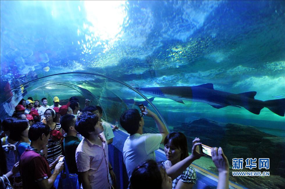 近日,青島海底世界景區借“2013中國海洋旅游年”契機,推出了暑期“新視窗、新表演、新展示”系列海底游項目,特別是融合聲、光、電、動漫等現代視聽技術的“夢幻美人魚”“海底龜兔賽跑”“人鯊共舞”等表演輪番上演,吸引了眾多游客。新華社記者李紫恒攝