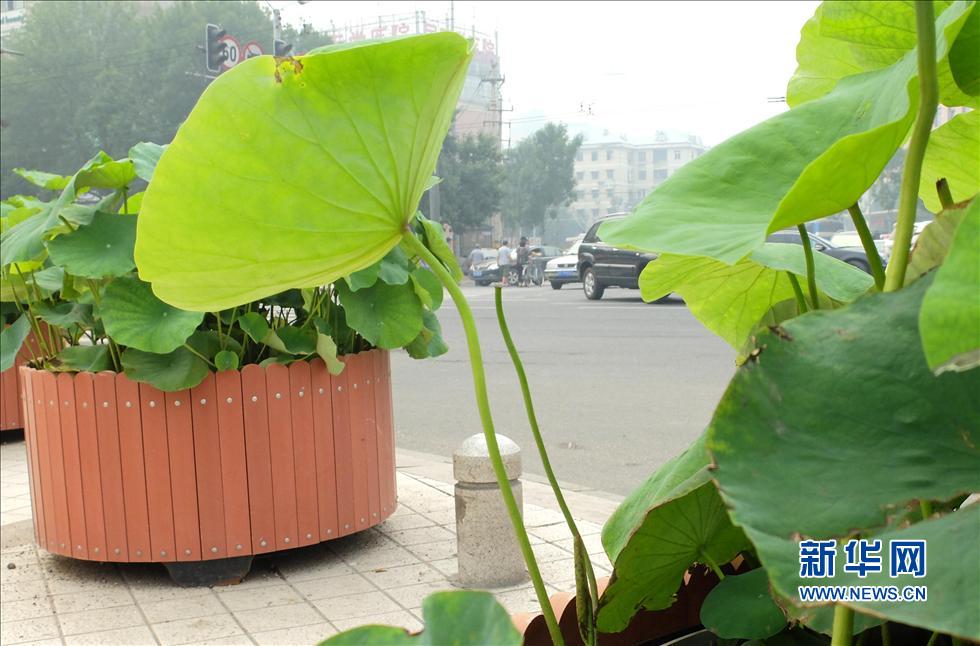 7月22日,在濟(jì)南市濼源大街,路邊的荷花只剩下綠葉,花朵不知去向。