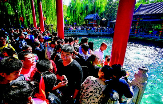 □記者 房賢剛 報道 10月2日,濟南第一泉風景區游客如織,幾呈“井噴”狀態,景區也接受了客流高峰考驗!