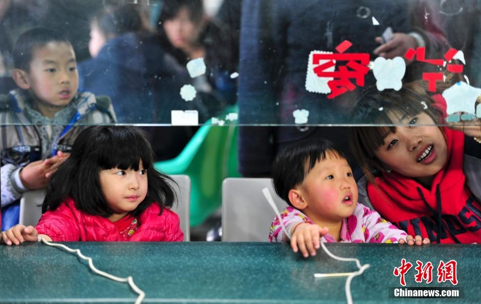 12月4日,幾名兒童接受輸液治療。近日,持續的霧霾天氣導致濟南空氣污染加劇,濟南各大醫院接診呼吸系統疾病兒童患者劇增,“小病號”扎堆“掛吊瓶”。中新社發 張勇 攝
