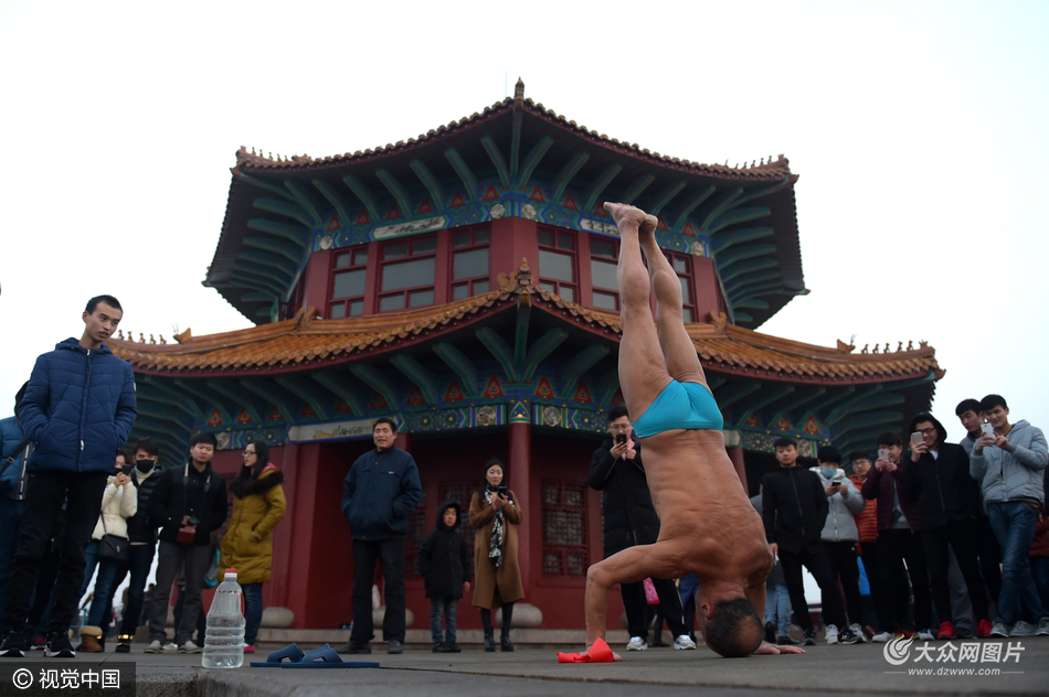 2017年1月1日下午,青島棧橋景區,75歲的張全通大爺在嚴寒里表演“飛燕式”跳水10次,迎接2017新年的到來。至今,張全通已經堅持跳水14年,無論是嚴寒還是酷暑,除非天氣條件特別惡劣。據他介紹,2016年他至少跳水350天,夏秋季節每天跳100至200個,春冬天氣較冷的時候則跳10至50個,一年下來至少跳了兩萬次。