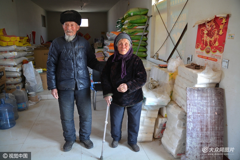 2017年2月12日,山東日照,今年86歲的徐永發老人和88歲的老伴杜秀蘭,是莒縣龍山鎮徐家阿疃村普通村民。他們自1953年結婚以來,兩人在大山深處,以種地為生,互相照顧,共同攜手,至今已經走過了63個春秋。