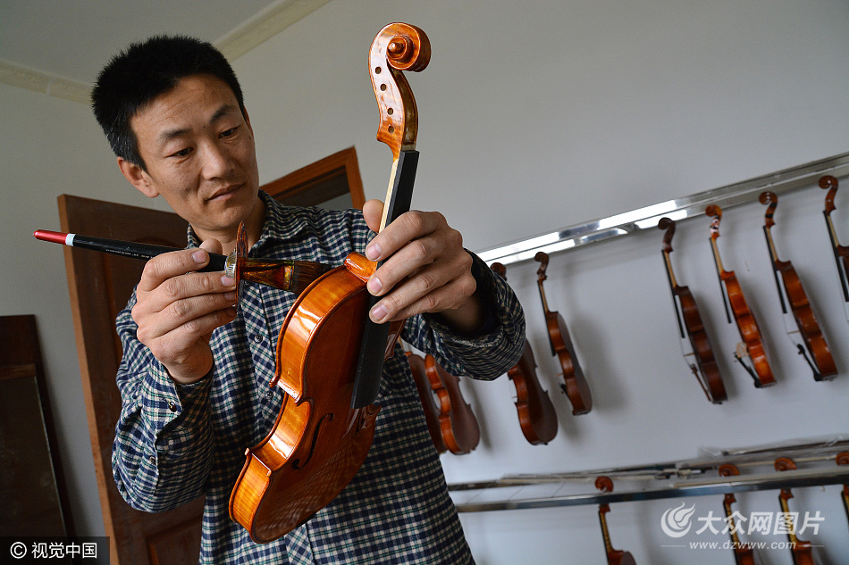 2017年4月5日,山東日照,今年41歲的丁波,是濤雒鎮苗家村一名普通的村民,他也是國家二級提琴制作師。現在,他手工制作的提琴,除在本地銷售外,還遠銷濟南、青島、上海,以及新加坡和日本。