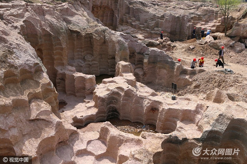 2017年4月10日,山東即墨環(huán)秀街道辦事處前南莊村的村民在挖掘清理塵封的“石磨坑”。