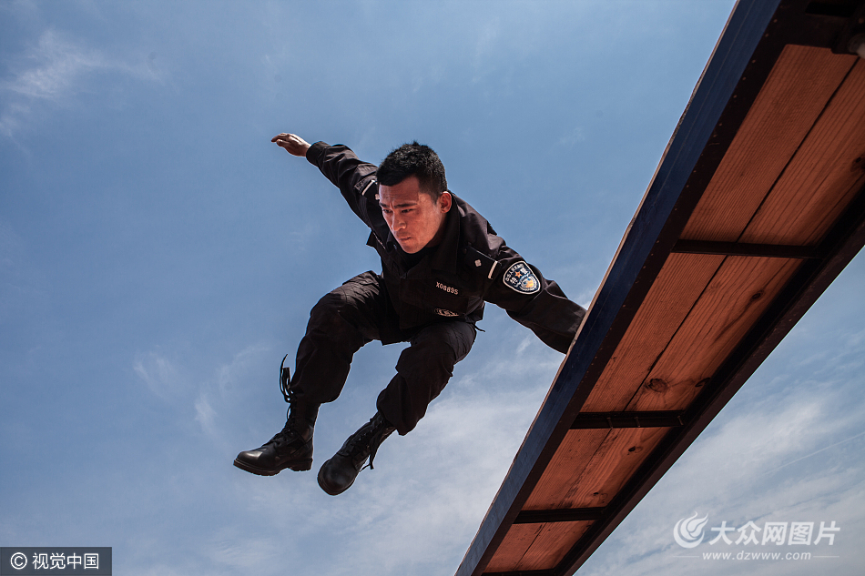 2017年5月3日,山東德州,記者走進公安訓練基地體驗特警訓練。