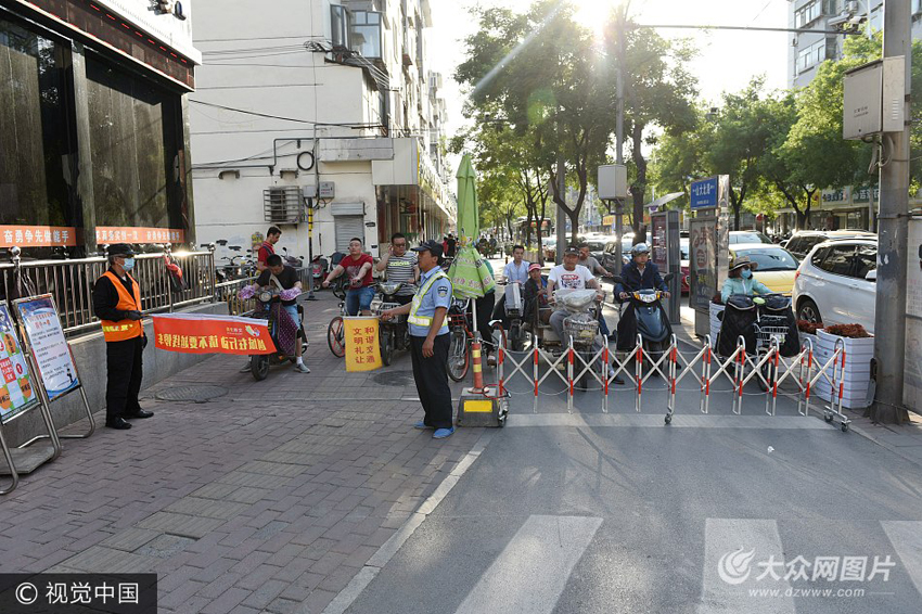 5月26日,在濟南山大北路二環東路路口,4個方向的非機動車道路口停車線上均多了一個伸縮護欄、一條攔阻繩,攔阻繩上寫著“不要闖紅燈 不要越線停車”,不少非機動車被攔在護欄后,等待綠燈時放行通過。按照事前約定好的分工,路口的協勤和文明交通志愿者一位操作護欄,一位操作攔阻繩,每當黃燈時便開始準備,紅燈時拉開,阻止行人、非機動車闖紅燈、越線停車。攔阻繩和伸縮護欄設置后,市民遵章守法的概率大大提高,經過勸阻提示,市 民了解了自己應該如何遵守交通秩序,路口的交通情況得到了改善。