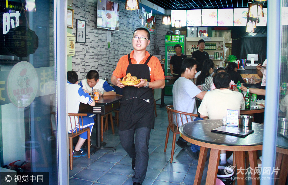 孫奇偉開炸雞店的想法源自2009年,那時候,正在韓國留學的孫奇偉,偶然一次機會在一家小店吃到了韓式炸雞后,便被炸雞特別的醬料味道吸引。“回去后我也可以開個店,說不定生意也不錯。”有了這個想法之后,他便在當地找到了一家比較出名的炸雞店,一邊打工一邊學習。“2015年年底回國后的第一件事,就是到處找開店的位置。”經過多次尋找,2016年初,他在經濟開發區比較繁華的路段租了一間50平米的店面。