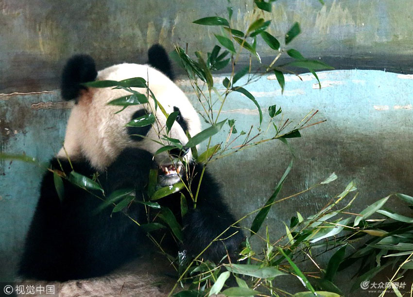 11月8日,“雅吉”來濟南安家一個多月。在寢室中,“雅吉”吃著新鮮竹子與紅蘿卜,邊吃邊向游客賣萌,似乎已經完全適應濟南的生活環境,呆萌的樣子引得市民紛紛給它拍照。